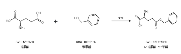 2.通過谷氨酸和苯甲醇合成L-谷氨酸 γ-芐酯,收率約98%;