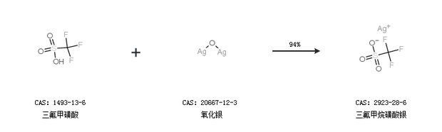 1.通過三氟甲磺酸和氧化銀合成三氟甲烷磺酸銀,收率約94%;