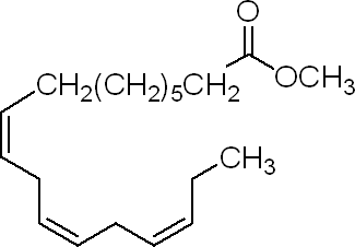淡黃色液體。不溶于水,溶于乙醇。由亞麻酸和甲醇酯化制得。