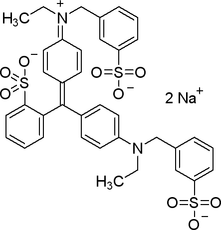 CAS: 3844-45-9中文名: 亮藍(lán)英文名: Erioglaucine disodium salt 中文別名: 亮藍(lán) 食用色素亮藍(lán),酸性藍(lán)9,罌紅二鈉鹽,雙[4-(N-乙基-N-3-磺酸苯甲基)氨基苯基]-2-磺酸甲苯基二鈉鹽英文別名: Erioglaucine disodium salt Acid Blue 9 Alphazurine FG C.I. 42090 Erioglaucine disodium salt Brilliant Blue FCF Erioglaucin A