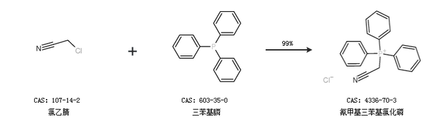 1.通過(guò)氯乙腈和三苯基膦合成氰甲基三苯基氯化磷,收率約99%;