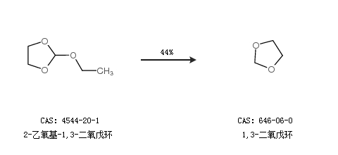 2.通過2-乙氧基-1,3-二氧戊環(huán)合成1,3-二氧戊環(huán),收率約44%;