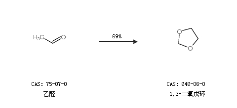 1.通過乙醛合成1,3-二氧戊環(huán),收率約69%;