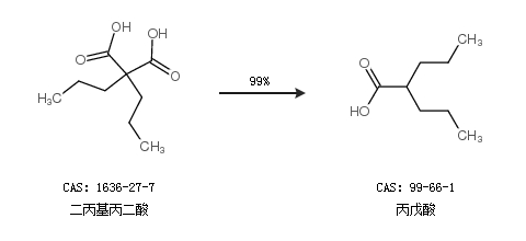 1.通過(guò)二丙基丙二酸合成丙戊酸,收率約99%;