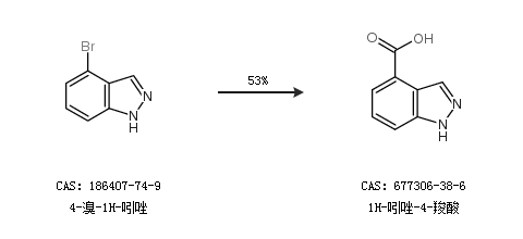 1.通過4-溴-1H-吲唑合成1H-吲唑-4-羧酸,收率約53%;