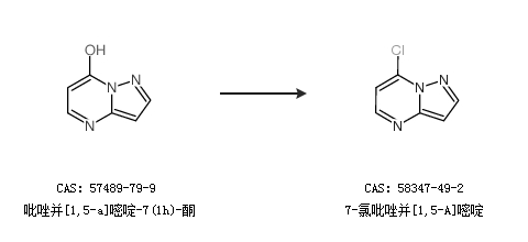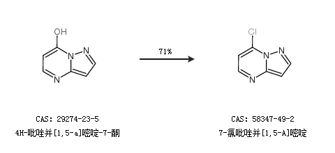 1.通過(guò)4H-吡唑并[1,5-a]嘧啶-7-酮合成7-氯吡唑并[1,5-A]嘧啶,收率約71%;