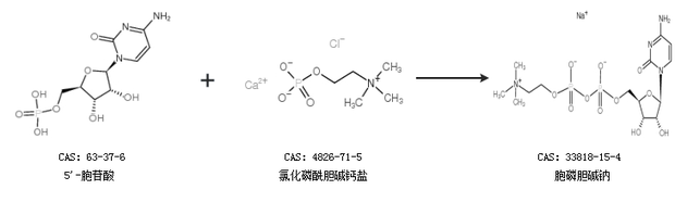 1.通過5''-胞苷酸和氯化磷酰膽堿鈣鹽合成胞磷膽堿鈉