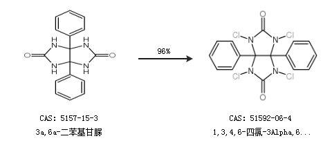 1.通過(guò)3a,6a-二苯基甘脲合成1,3,4,6-四氯-3Alpha,6Alpha-聯(lián)苯尿嘧啶,收率約96%;