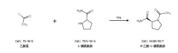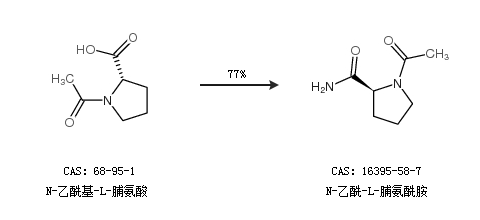 1.通過N-乙;-L-脯氨酸合成N-乙酰-L-脯氨酰胺,收率約77%;