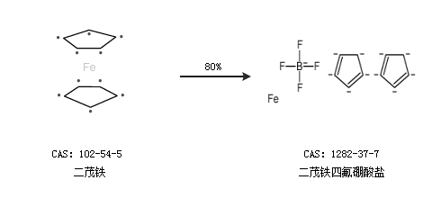 2.通過(guò)二茂鐵合成二茂鐵四氟硼酸鹽,收率約80%;