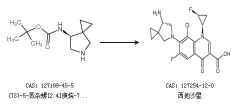 1.通過(7S)-5-氮雜螺[2.4]庚烷-7-基氨基甲酸叔丁酯合成西他沙星