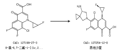2.通過8-氯-6,7-二氟-1-[(1r,2s)-2-氟環(huán)丙基]-1,4-二氫-4-氧代-3-喹啉羧酸合成西他沙星