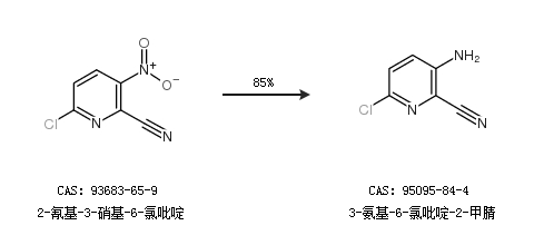 2.通過2,6-二氯-3-硝基吡啶和鐵合成3-氨基-6-氯吡啶-2-甲腈,收率約56%;
