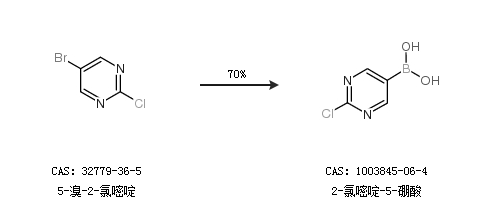 1.通過5-溴-2-氯嘧啶合成2-氯嘧啶-5-硼酸,收率約70%;