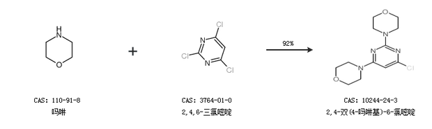 1.通過嗎啉和2,4,6-三氯嘧啶合成2,4-雙(4-嗎啉基)-6-氯嘧啶,收率約92%;