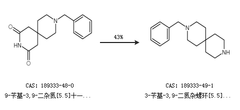 1.通過9-芐基-3,9-二雜氮[5.5]十一烷-2,4-二酮合成3-芐基-3,9-二氮雜螺環(huán)[5.5]十一烷,收率約43%;
