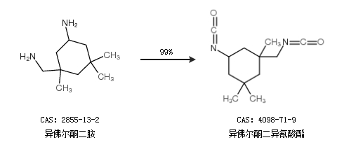 2.通過(guò)異佛爾酮二胺合成異佛爾酮二異氰酸酯,收率約99%;