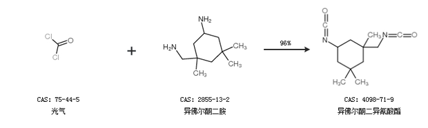 1.通過(guò)光氣和異佛爾酮二胺合成異佛爾酮二異氰酸酯,收率約96%;