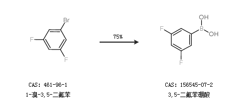 2.通過(guò)1-溴-3,5-二氟苯合成3,5-二氟苯硼酸,收率約75%;