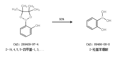 1.通過2-(4,4,5,5-四甲基-1,3,2-二雜氧戊硼烷-2-基)苯酚合成2-羥基苯硼酸,收率約93%;