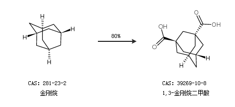 1.通過金剛烷合成1,3-金剛烷二甲酸,收率約80%;
