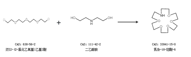2.通過雙[2-(2-氯化乙氧基)乙基]醚和二乙醇胺合成氮雜-18-冠醚-6