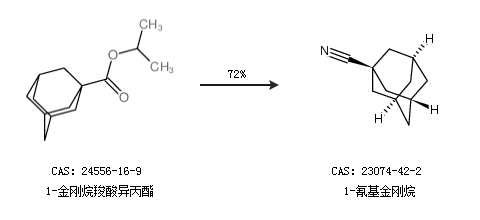 1.通過1-金剛烷羧酸異丙酯合成1-氰基金剛烷,收率約72%;