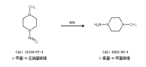 1.通過1-甲基-4-亞硝基哌嗪合成1-氨基-4-甲基哌嗪,收率約90%;