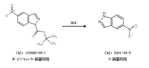 2.通過(guò)N-(1)-boc-5-硝基吲唑合成5-硝基吲唑,收率約96%;