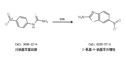 2.通過(guò)對(duì)硝基苯基硫脲合成2-氨基-6-硝基苯并噻唑,收率約59%;