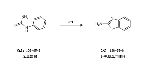 1.通過苯基硫脲合成2-氨基苯并噻唑,收率約98%;