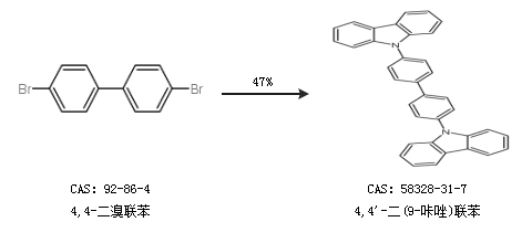 2.通過(guò)4,4-二溴聯(lián)苯合成4,4''-二(9-咔唑)聯(lián)苯,收率約47%;