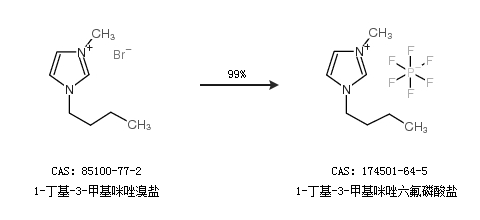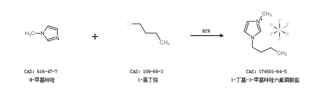 2.通過(guò)N-甲基咪唑和1-氯丁烷合成1-丁基-3-甲基咪唑六氟磷酸鹽,收率約92%;