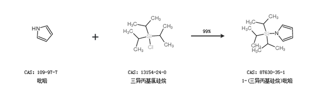 1.通過吡咯和三異丙基氯硅烷合成1-(三異丙基硅烷)吡咯,收率約99%;
