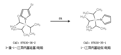 2.通過3-溴-1-(三異丙基硅基)吡咯合成1-(三異丙基硅烷)吡咯,收率約8%;