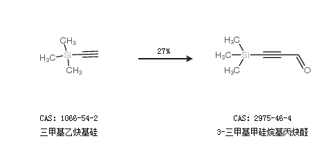 2.通過三甲基乙炔基硅合成3-三甲基甲硅烷基丙炔醛,收率約27%;