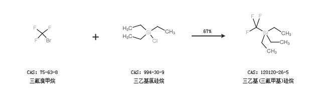 2.通過(guò)三氟溴甲烷和三乙基氯硅烷合成三乙基(三氟甲基)硅烷,收率約67%;