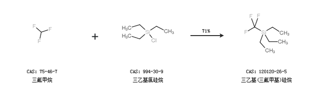 1.通過(guò)三氟甲烷和三乙基氯硅烷合成三乙基(三氟甲基)硅烷,收率約71%;