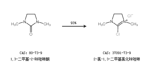 1.通過1,3-二甲基-2-咪唑啉酮合成2-氯-1,3-二甲基氯化咪唑啉,收率約93%;