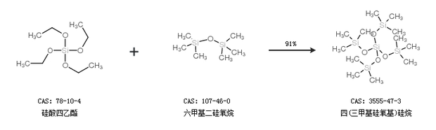 1.通過硅酸四乙酯和六甲基二硅氧烷合成四(三甲基硅氧基)硅烷,收率約91%;