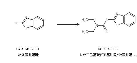 1.通過2-氯苯并噻唑合成N,N-二乙基硫代氨基甲酰-2-苯并噻唑硫醚