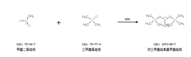 1.通過甲基二氯硅烷和六甲基二硅氧烷合成雙三甲基硅氧基甲基硅烷