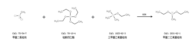 2.通過甲基二氯硅烷、硅酸四乙酯和三甲基乙氧基硅烷合成甲基二乙氧基硅烷,收率約68%;