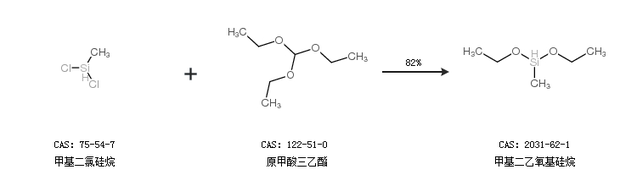 1.通過甲基二氯硅烷和原甲酸三乙酯合成甲基二乙氧基硅烷,收率約82%;