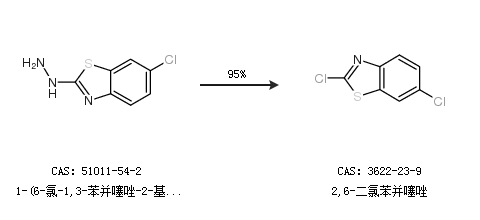 1.通過1-(6-氯-1,3-苯并噻唑-2-基)肼合成2,6-二氯苯并噻唑,收率約95%;