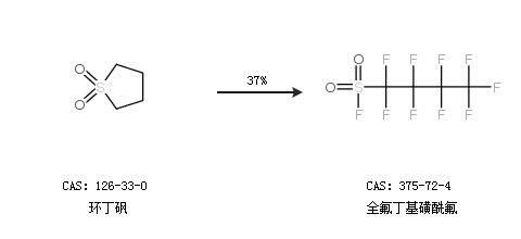 2.通過環(huán)丁砜合成全氟丁基磺酰氟,收率約37%;