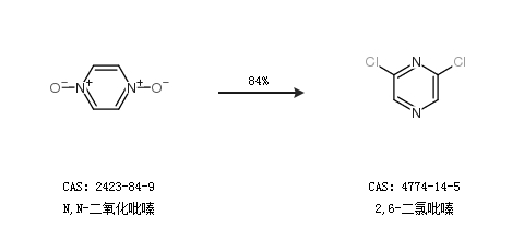 1.通過N,N-二氧化吡嗪合成2,6-二氯吡嗪,收率約84%;