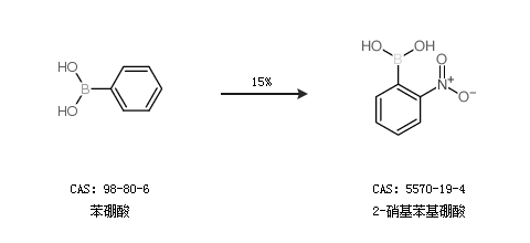 2.通過(guò)苯硼酸合成2-硝基苯基硼酸,收率約15%;