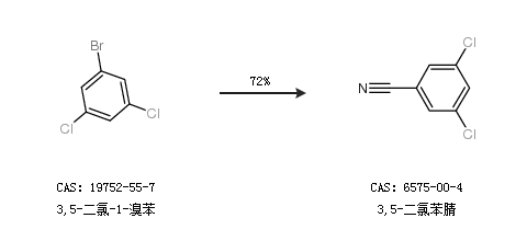 1.通過3,5-二氯-1-溴苯合成3,5-二氯苯腈,收率約72%;