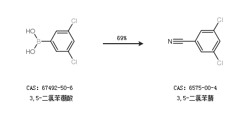2.通過3,5-二氯苯硼酸合成3,5-二氯苯腈,收率約69%;